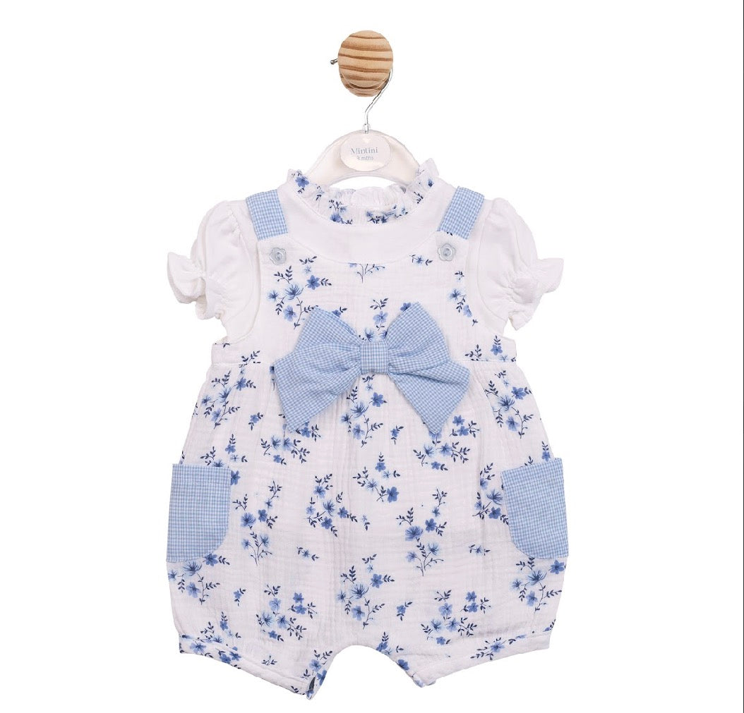 Mintini Blue Floral Dungaree Set