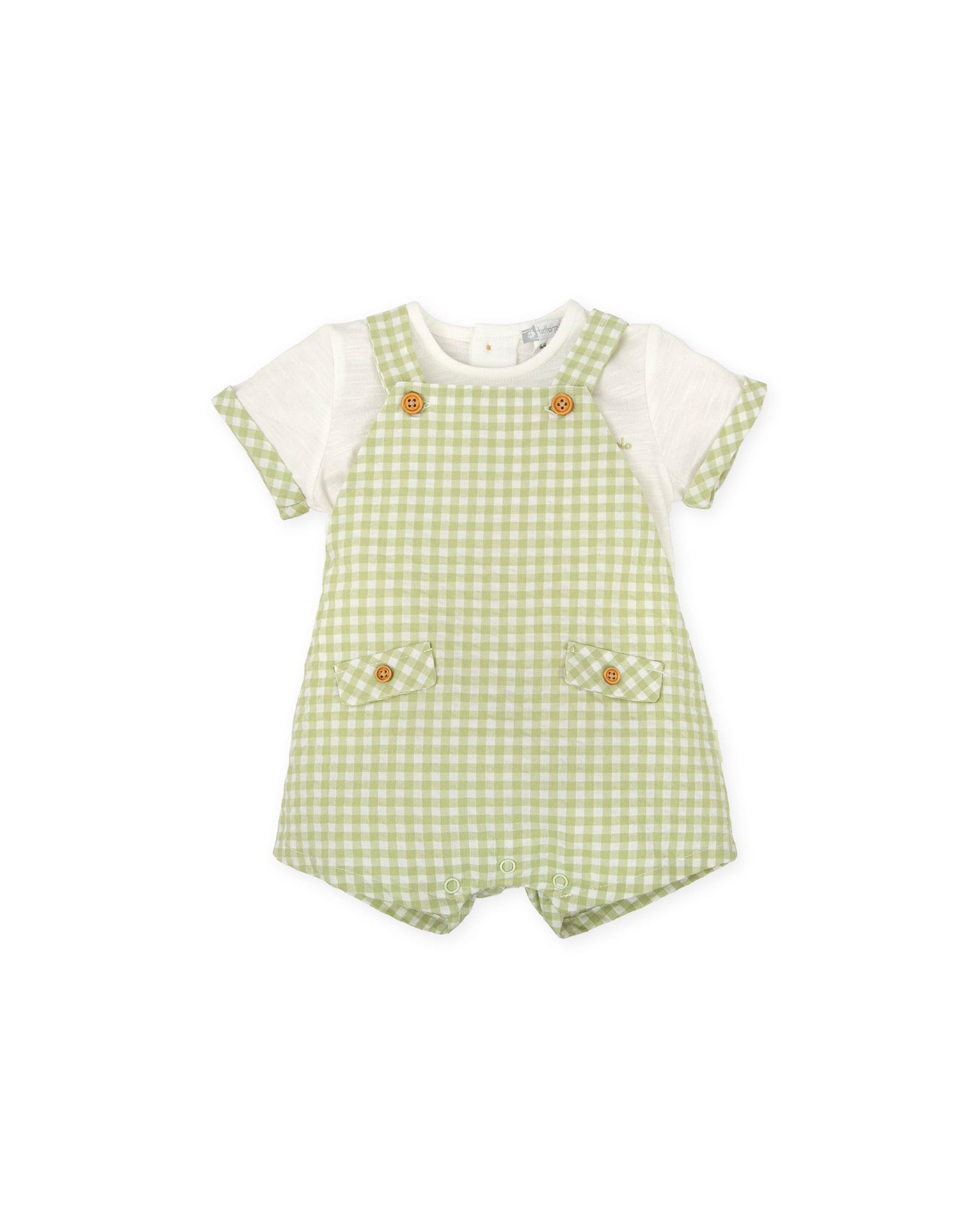 Preorder Tutto Piccolo Sage Check Dungaree Set